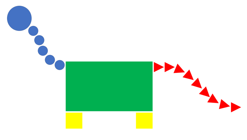 Povedz, z akých geometrických útvarov je dinosaurus na obrázku zložený.